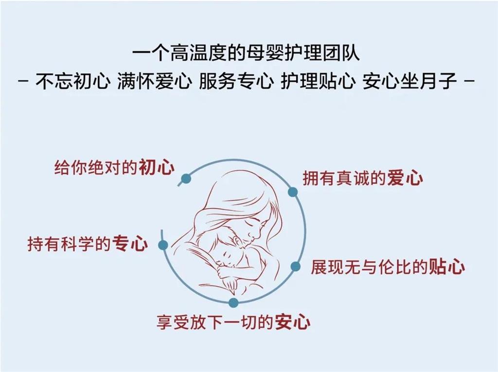 母嬰護(hù)理團(tuán)隊:專業(yè)護(hù)理團(tuán)隊對新生兒寶寶進(jìn)行每日體征監(jiān)測及一系列系統(tǒng)護(hù)理