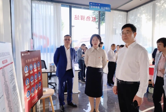 在和平國(guó)際醫(yī)院院長(zhǎng)薛志輝、黨委書記盧瓊的介紹下,何學(xué)考一行先后參觀了醫(yī)院醫(yī)務(wù)社工服務(wù)點(diǎn)、文化墻、黨建長(zhǎng)廊及紅色驛站,詳細(xì)了解醫(yī)院發(fā)展現(xiàn)狀、“兩新黨建”工作成效,并對(duì)醫(yī)務(wù)社工部“五位一體”新模式的開展情況重點(diǎn)調(diào)研。作為溫州首家社會(huì)辦醫(yī)機(jī)構(gòu)的醫(yī)務(wù)社工部,和平國(guó)際醫(yī)院醫(yī)務(wù)社工部自今年七月成立以來,積極探索“醫(yī)院+社區(qū)+社工機(jī)構(gòu)+慈善基金組織+志愿者隊(duì)伍”的“五位一體”協(xié)同模式,推進(jìn)“院內(nèi)+院外+社會(huì)”大聯(lián)動(dòng),以專業(yè)社工服務(wù)為醫(yī)療融入人文關(guān)懷,改善患者就醫(yī)體驗(yàn),患者滿意度從80%提升到98%,今年累計(jì)開展“紅悅工程”醫(yī)療服務(wù)43場(chǎng)、惠及群眾1935人次。