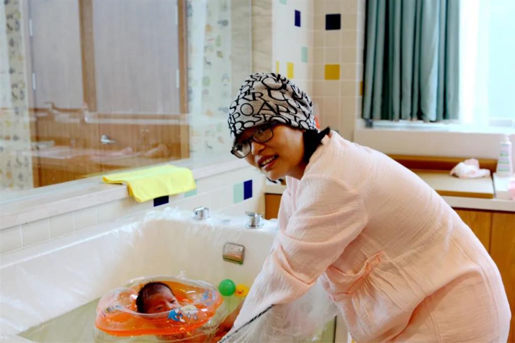 剛生完孩子我的腰還是有點痛的,到了第三天狀態(tài)就好了很多,護(hù)士長帶寶寶去洗澡、游泳,還幫我叫來了擅長看骨科的周健副院長,周醫(yī)生還逗了逗我家的老大。