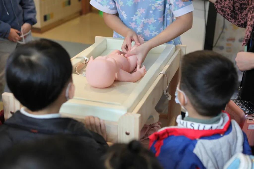 第一次了解關(guān)于嬰兒的知識(shí),同學(xué)們都非常感興趣,認(rèn)真地聽著醫(yī)生解說。