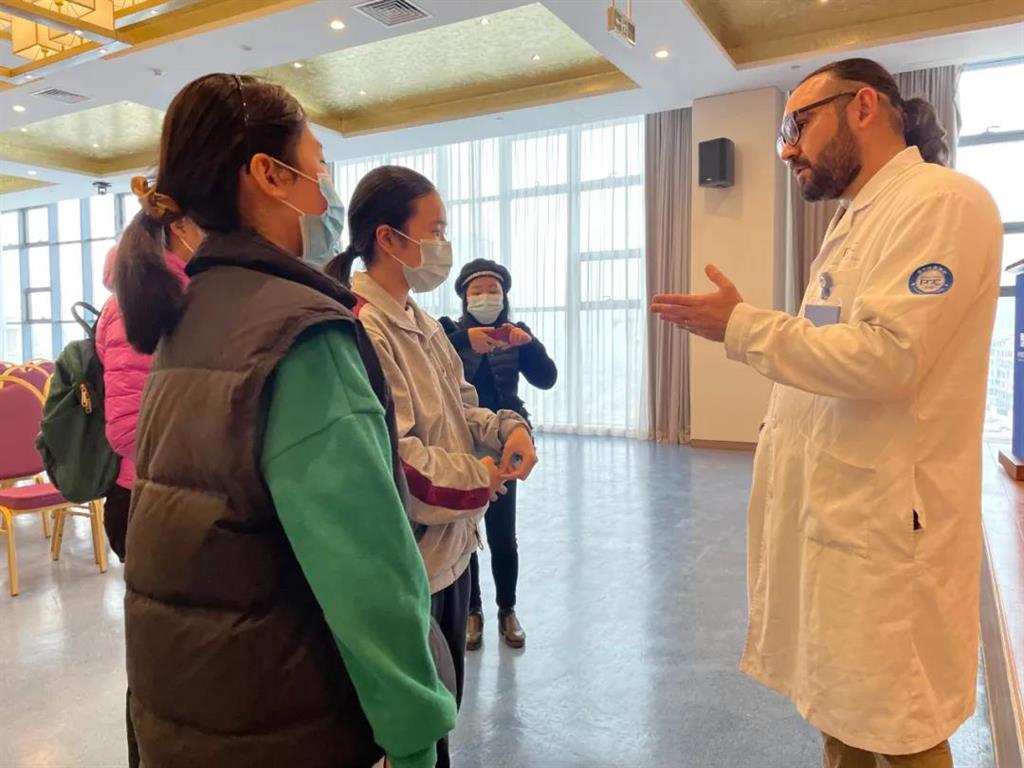 “I also want to be a doctor, What should I do?”活動(dòng)結(jié)束后,同學(xué)們向豪孟德提問。“You need to study hard to get into a good school and become an excellent doctor。”豪孟德鼓勵(lì)他們努力學(xué)習(xí),長大后成為一名優(yōu)秀的醫(yī)生。