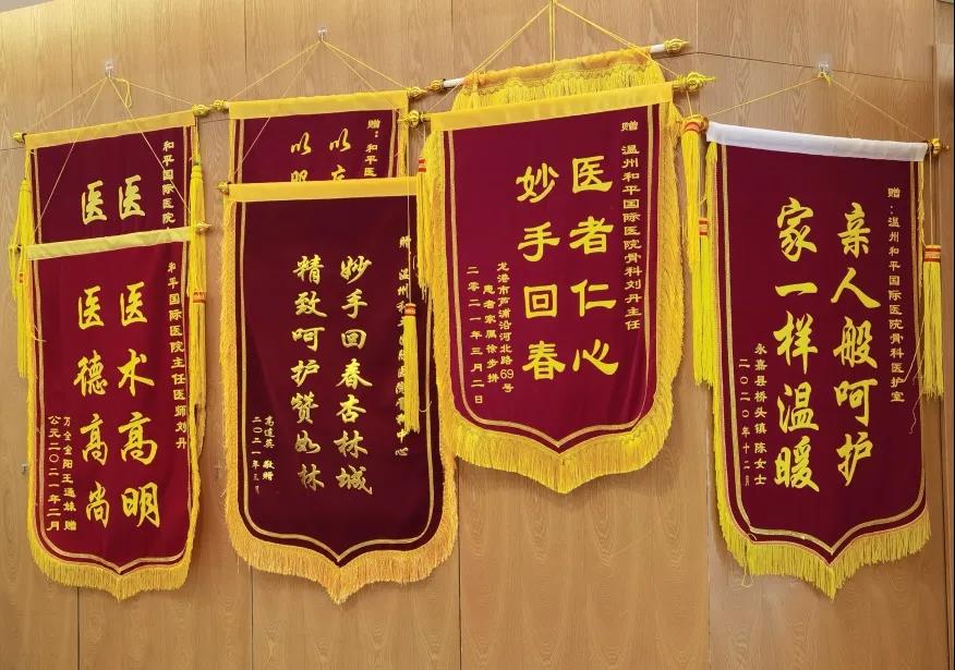 這里的每一面錦旗都滿載著患者對醫(yī)護工作者濃濃的謝意,對于醫(yī)護工作者而言,患者的每一次肯定都是對自己工作最大的鼓勵與認可。身為和平人,我們將不斷努力,力求為每一位患者帶去最好的治療,真正做到“生命值得最好的對待”!