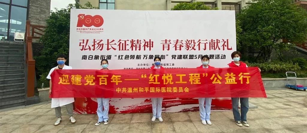 雄關(guān)漫道真如鐵,而今邁步從頭越。新時(shí)代,新征程,和平國(guó)際醫(yī)院的步伐也更加堅(jiān)定。以長(zhǎng)征精神為支柱,以“紅悅工程”為紐帶,加強(qiáng)與黨建聯(lián)盟單位、學(xué)校、社區(qū)、養(yǎng)老院等社會(huì)組織及團(tuán)體的聯(lián)系,讓醫(yī)務(wù)人員走出醫(yī)院,更直接地為學(xué)校師生提供專(zhuān)業(yè)醫(yī)療服務(wù),共同為建黨百年獻(xiàn)禮!