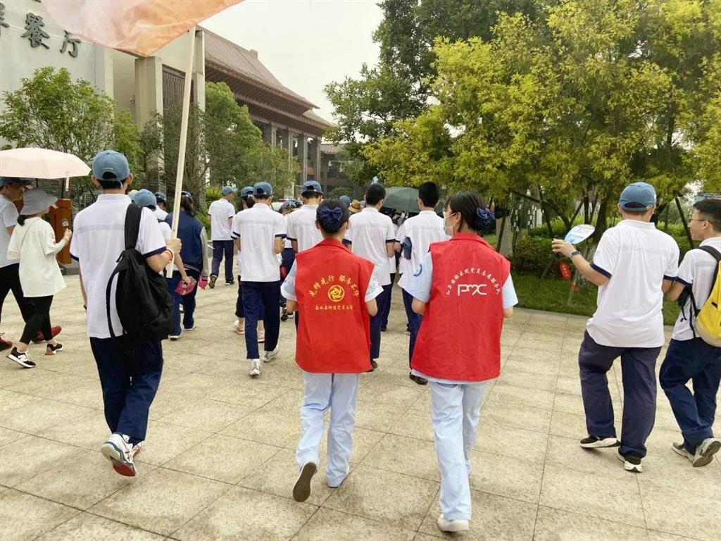 5月份的溫州,天氣陰晴不定,一場(chǎng)說(shuō)來(lái)就來(lái)的陣雨,絲毫沒(méi)有影響學(xué)生們前進(jìn)的步伐,在清一色的校服中,身穿紅色志愿者服的白衣天使們也為本次毅行活動(dòng)添上了艷麗的一筆。