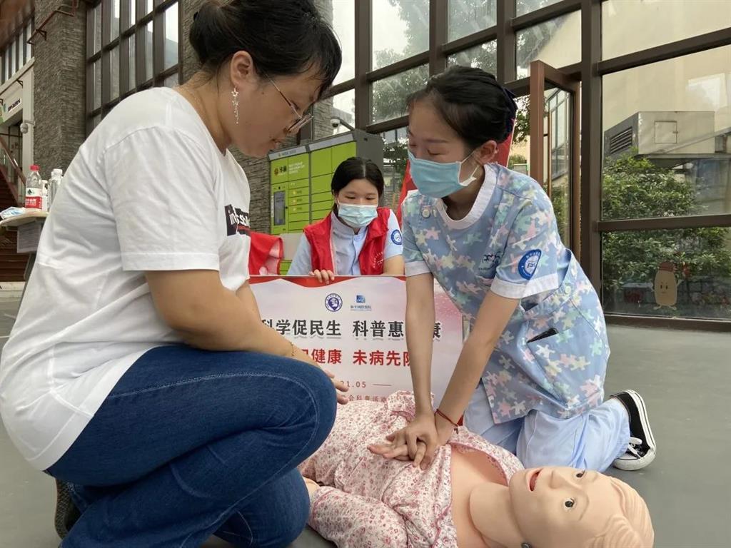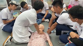 邵醫(yī)生詳細(xì)地為在場(chǎng)學(xué)生講解心肺復(fù)蘇過(guò)程,讓大家了解哪些情況需要對(duì)患者進(jìn)行急救,呼叫120救援時(shí)應(yīng)說(shuō)明哪些情況,以及急救過(guò)程中需要注意的細(xì)節(jié),如何在緊急情況下對(duì)患者進(jìn)行心肺復(fù)蘇等。在場(chǎng)學(xué)生們熱情高漲,聽(tīng)得津津有味。在演練完畢后,大家也踴躍上前,用已經(jīng)掌握的基本急救技能對(duì)人體模型進(jìn)行實(shí)操演練。