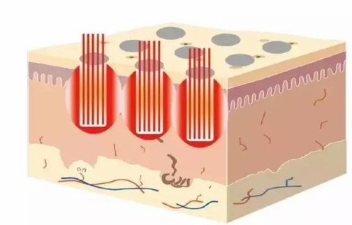 在皮膚層形成熱剝脫、熱凝固、熱效應(yīng)三個區(qū)域