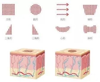 “點陣”是一種激光發(fā)射的模式,控制住了激光的形狀,將原本聚集的激光束分散成數(shù)百個更微小的光束,令每一束激光之間都有正常組織可以作為熱擴(kuò)散區(qū)域,分散熱損傷。