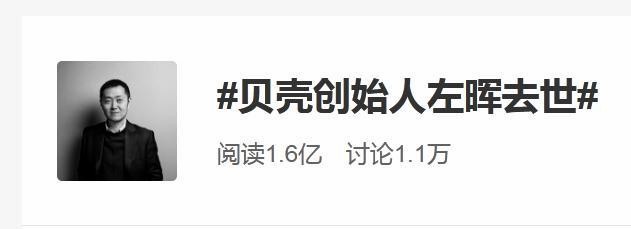 5月20日消息,貝殼發(fā)布消息稱,公司懷著深切的悲痛宣布,公司創(chuàng)始人兼董事長(zhǎng)左暉先生因疾病意外惡化于2021年5月20日去世。