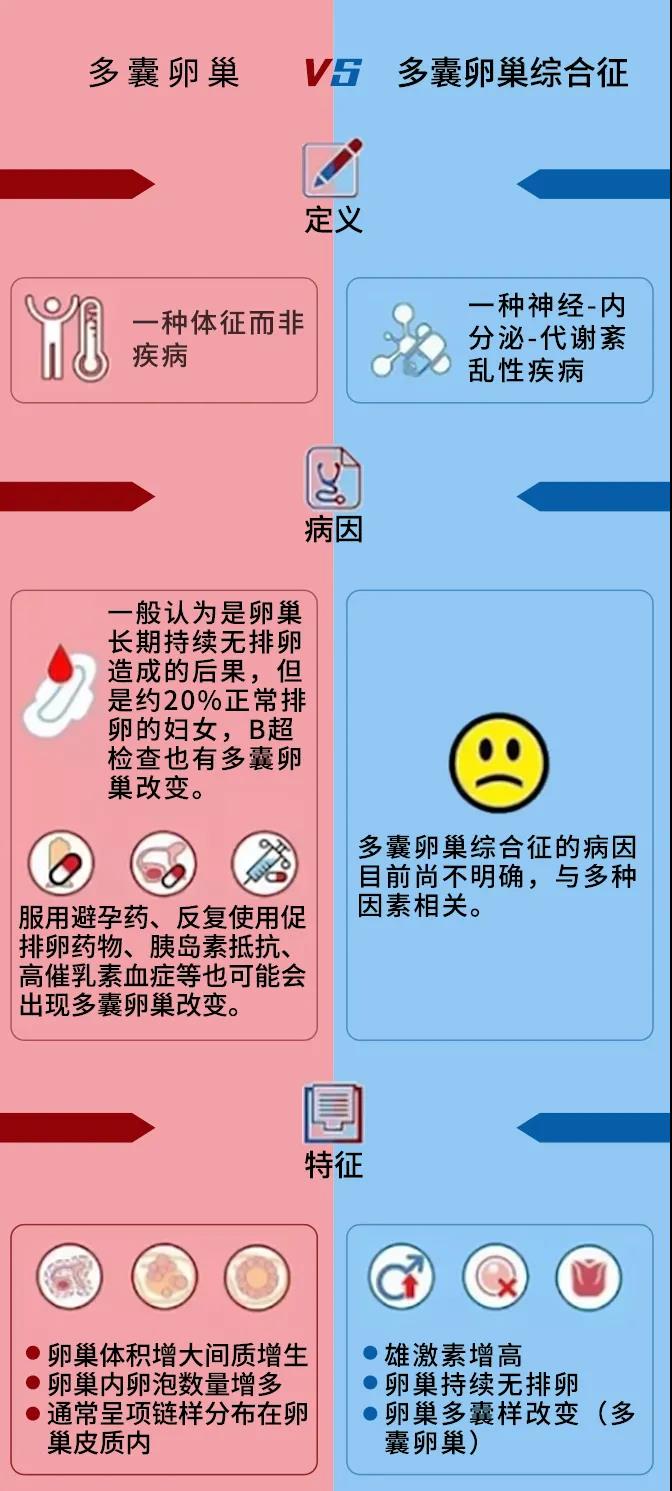 除了上述臨床表現(xiàn),醫(yī)生還會借助一些輔助檢查,來最終判斷是否患有多囊卵巢綜合征,比如血清檢測(內分泌測定)、B超檢查等。如果體檢的時候,被告知多囊卵巢樣改變,不要怕,這不等于多囊卵巢綜合征。那么,多囊卵巢和多囊卵巢綜合征是什么關系呢?多囊卵巢綜合征的診斷標準是:月經稀發(fā)、閉經或不規(guī)則子宮出血,出現(xiàn)高雄激素的臨床表現(xiàn)(比如多毛、痤瘡、肥胖等)或者超聲提示卵巢多囊樣改變,同時,需要排除其他可能引起高雄激素血癥和排卵異常的疾病。
