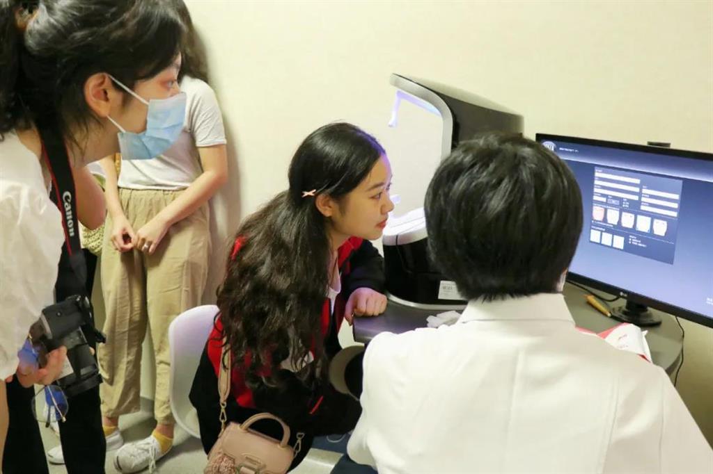 女同學(xué)們饒有興趣地體驗(yàn)了VISA皮膚檢測(cè)。皮膚美容科主任吳麗微介紹了醫(yī)院的醫(yī)美設(shè)備和醫(yī)美項(xiàng)目,更是引起了同學(xué)們的聲聲驚嘆。