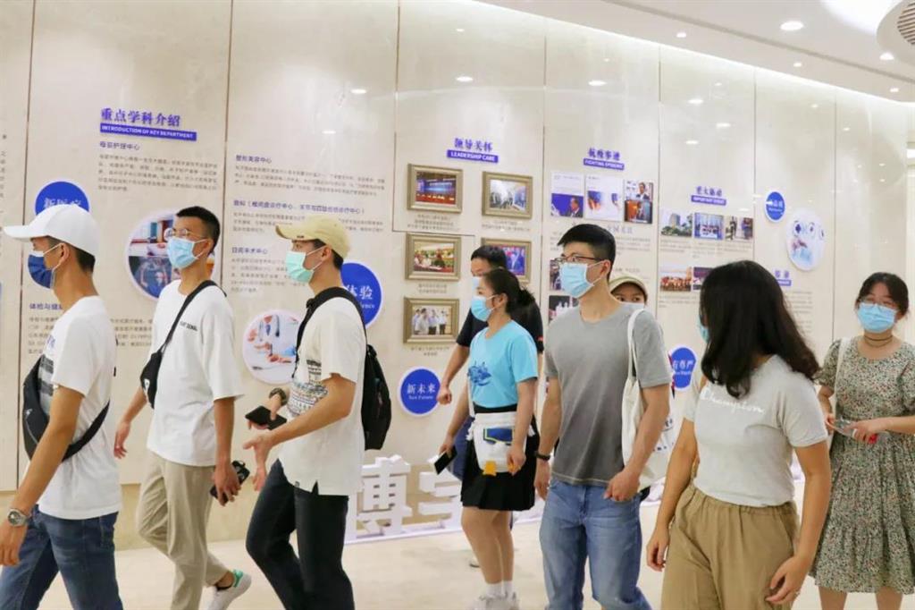 7月14日上午,2021兩岸青年醫(yī)學(xué)人文研習(xí)營的30多名臺(tái)灣大學(xué)生們來到和平國際醫(yī)院進(jìn)行參觀。