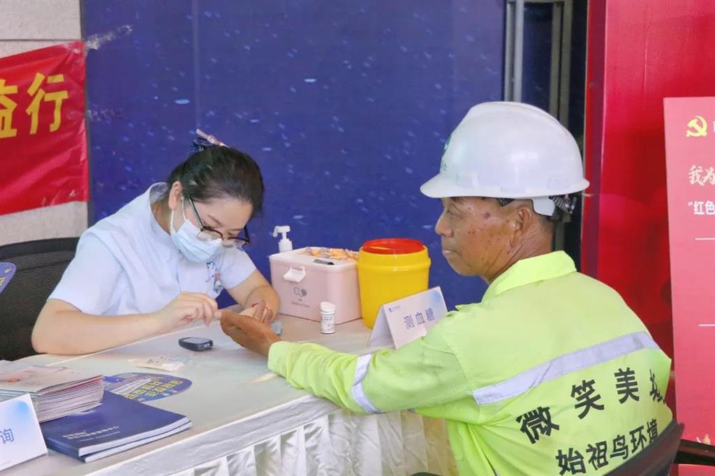 醫(yī)護(hù)人員耐心為每一位居民測血糖,環(huán)衛(wèi)工人在測量血糖的時(shí)候緊張地問道:“我吃了午飯也可以測血糖嗎?”醫(yī)護(hù)人員貼心地詢問他進(jìn)食的時(shí)間,并耐心地講解測血糖時(shí)的注意事項(xiàng)。在聽到自己的血糖值是正常的,環(huán)衛(wèi)工人才安心離開。