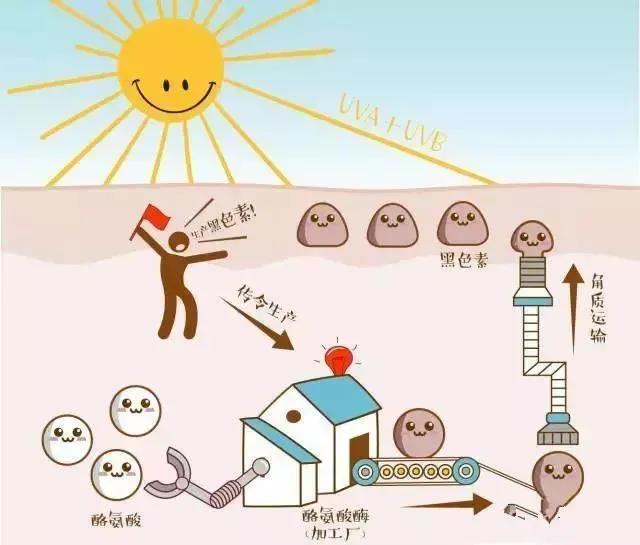 此消彼長,自由基過量累積,細(xì)胞氧化增多,還會(huì)刺激黑色素分泌增多,從而形成局部的色斑或者整體的暗沉情況。
