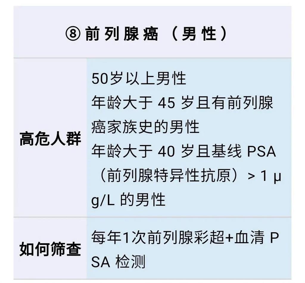 不過,癌癥大概有200多種,不可能做到每種都防。所以小編建議大家重點關(guān)注我國發(fā)病率最高的8種癌癥,即:肺癌、乳腺癌、結(jié)直腸癌、胃癌、肝癌、食管癌、宮頸癌、前列腺癌。(特別是前6種,占我國所有癌癥發(fā)病和死亡率的80%) 8大癌癥的高危人群和篩查方式,可以對照表格: