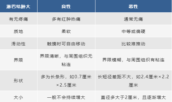 除了有無痛感外,淋巴結(jié)的滑動性、質(zhì)地、與周圍組織的界限等,也是判斷其性質(zhì)的重要依據(jù):