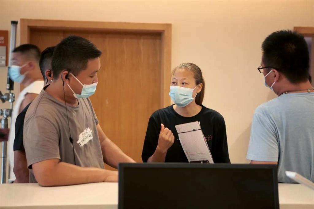當下疫情防控仍處緊要關(guān)頭,每一個環(huán)節(jié)都需嚴把嚴控,因此醫(yī)院在與劇組協(xié)商后控制了入院拍攝的人數(shù),并對入院進行拍攝作業(yè)的工作人員,逐一進行核酸檢測、體溫測量、行程碼查驗。當問及劇組為什么會選擇和平國際醫(yī)院進行拍攝時,制片人這樣說,“因為這里的場景和劇中的場景很相近,不管是設(shè)計風格還是環(huán)境氛圍,都正好是我們想要的”。和平國際醫(yī)院是一家有著臺資背景的醫(yī)院,而該劇導(dǎo)演林合隆也是臺灣人,因此在選擇和平國際醫(yī)院作為拍攝地,對于林合隆來說有著難以言說的親切感。 (片場畫面)